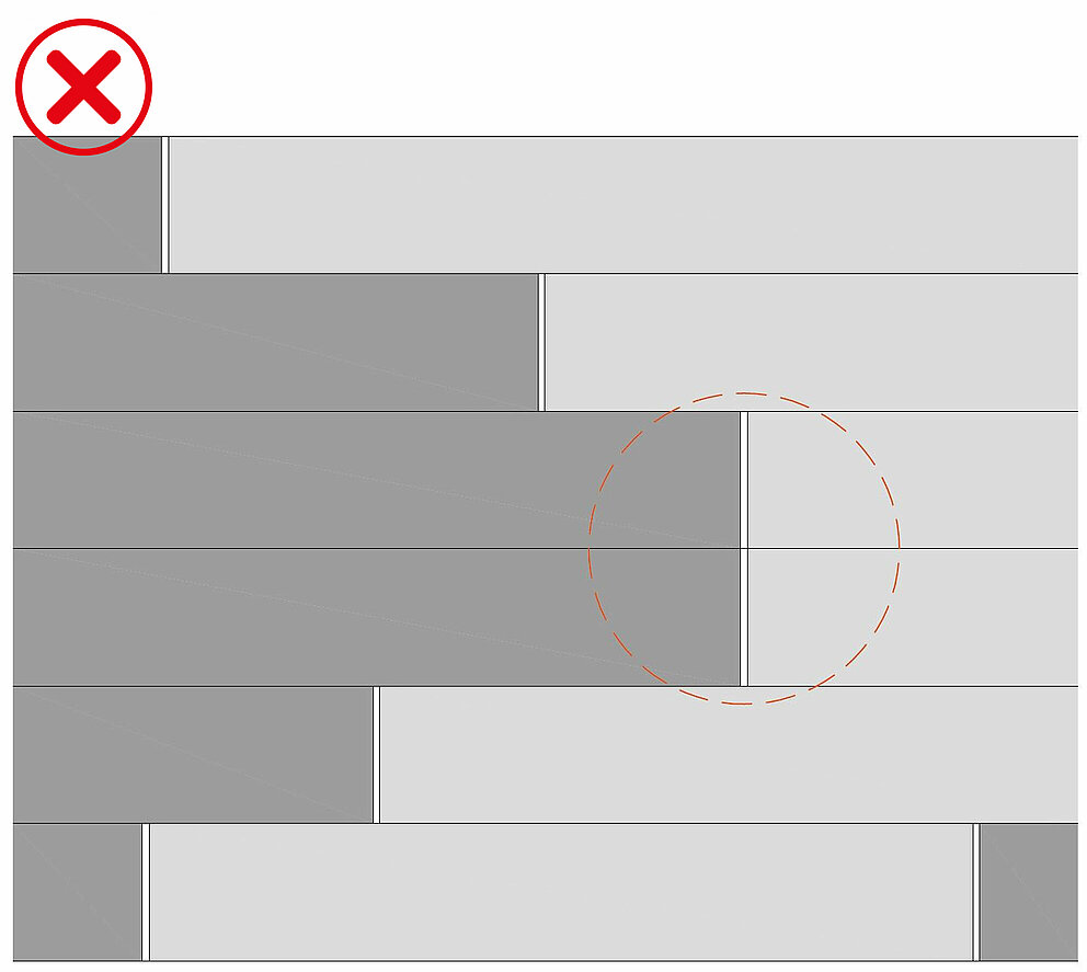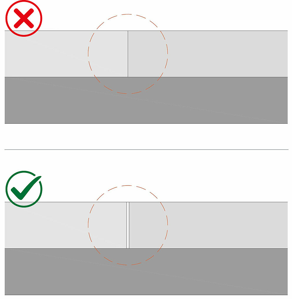 Nie jest możliwe montowanie fug PREFA bezpośrednio jedna na drugiej: