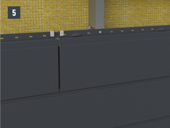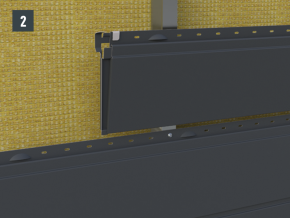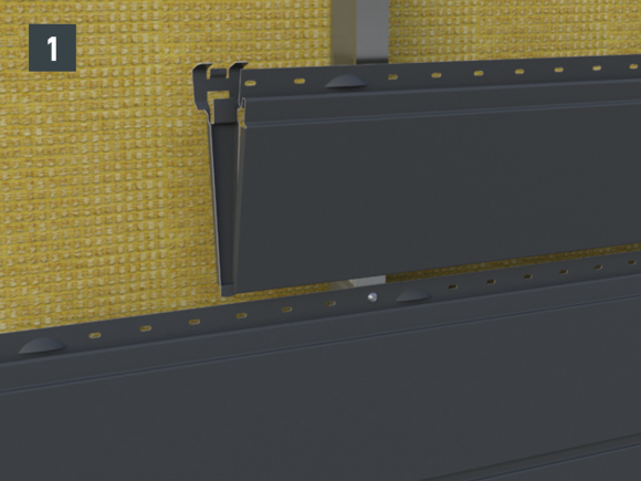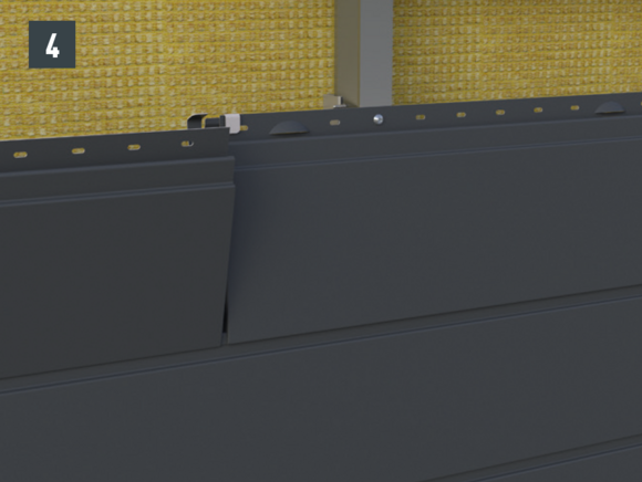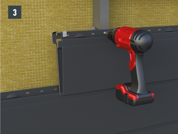 • Zamontować siding ze wstępnie zmontowaną fugą zgodnie z wytycznymi dotyczącymi montażu sidingów i przymocować go do konstrukcji nośnej (rys. 3).