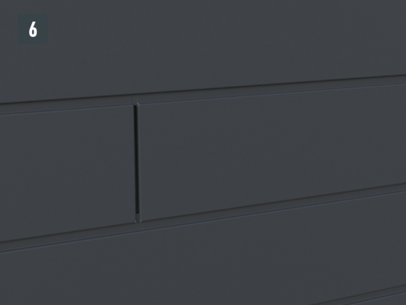 • Zamontować następny element sidingu PREFA z odpowiednim przesunięciem (rys. 6).