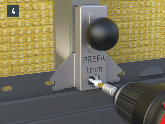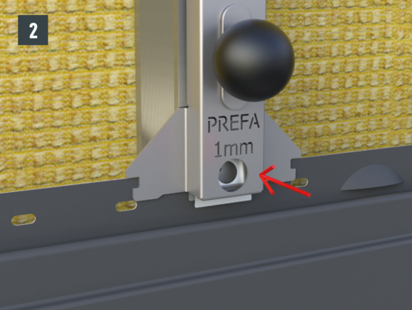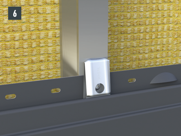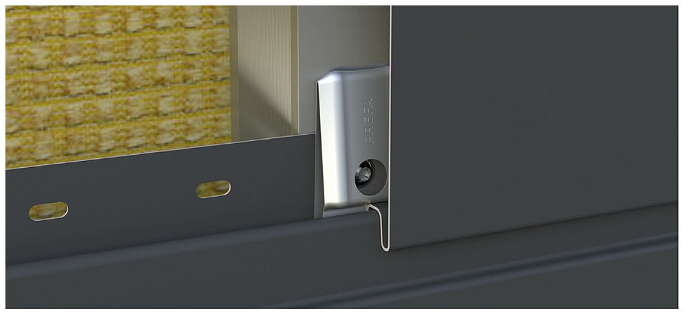 Odległość między klipsem do zabezpieczeń burzowych a piórem sidingu ma decydujące znaczenie dla swobodnego montażu i rozszerzalności materiału. Dlatego też klipsy do zabezpieczeń burzowych należy montować wyłącznie z odpowiednim elementem mocującym, aby zapewnić stałą odległość.