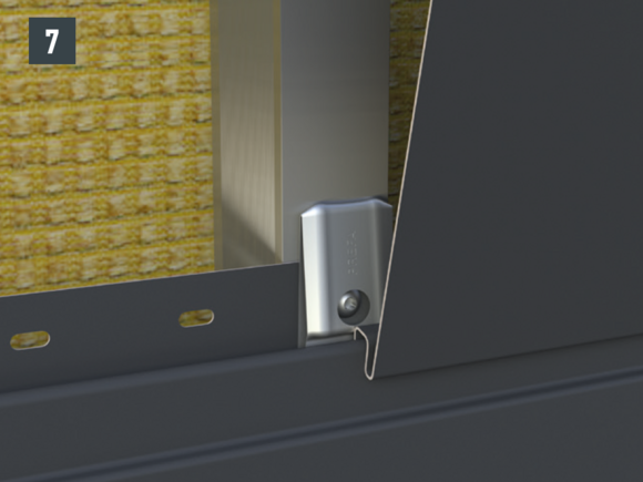 Jeśli układanie elewacji zaczyna się od elementu sidingu 400 × 1,2 mm, klipsy do zabezpieczeń burzowych należy zamocować do profilu początkowego.