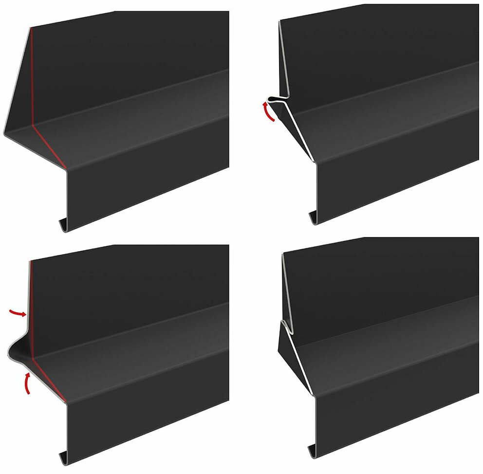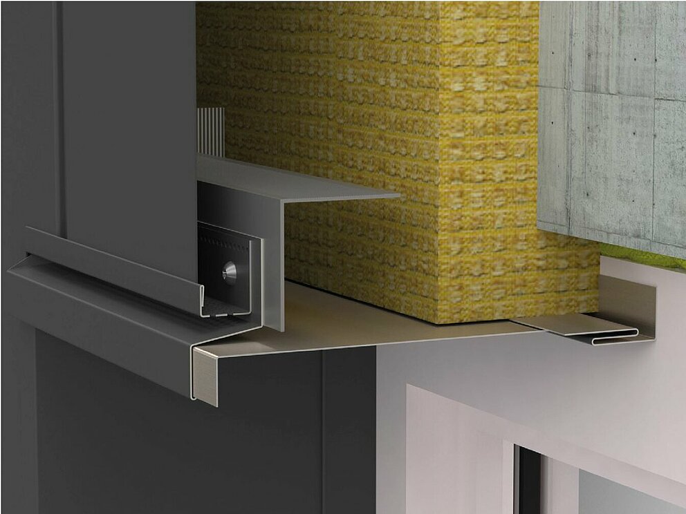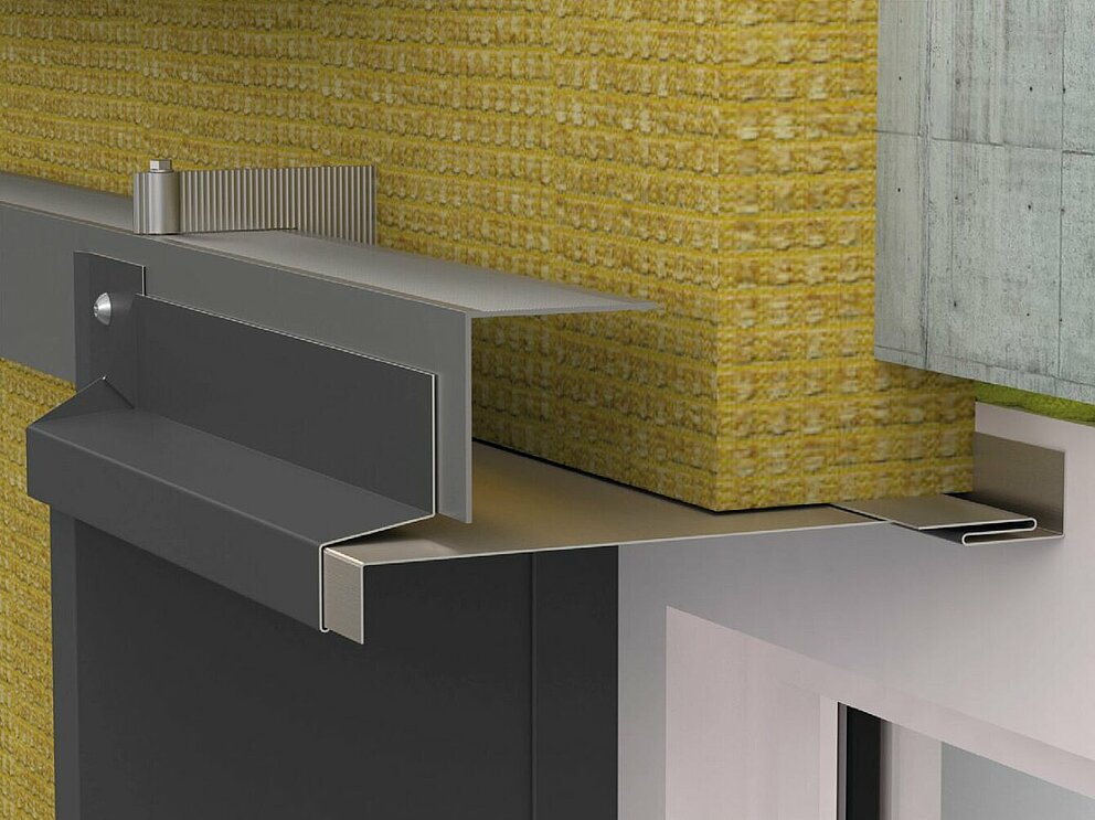 Następnie należy ustawić na krawędzi górne ościeże dostosowane do warunków panujących w miejscu montażu i wsunąć je do listwy wtykowej. Okapnik jest zaczepiony na górnej płycie ościeża.
