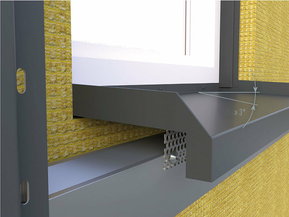 Parapet okienny musi być zaprojektowany ze spadkiem co najmniej 3°. Przestrzegać wymagań obowiązujących w danym kraju.
