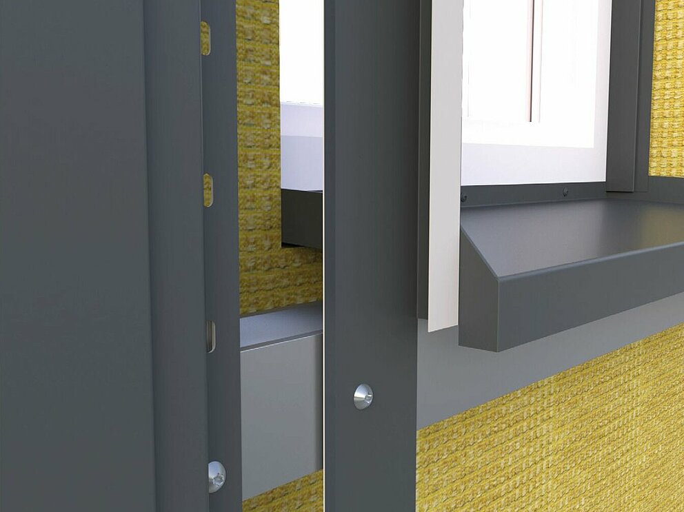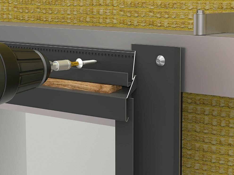 Przykręcić wsporniki do ościeża do konstrukcji nośnej po lewej i prawej stronie okna. Jednocześnie do ramy okiennej lub muru mocuje się listwy wciskane do blachy ościeża i listwy wciskane do nadproża okna.