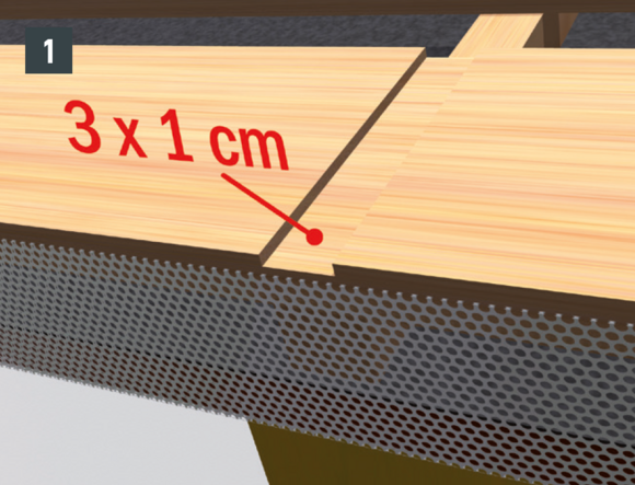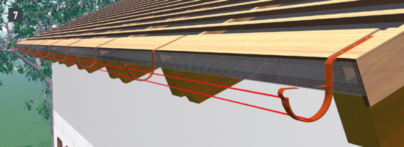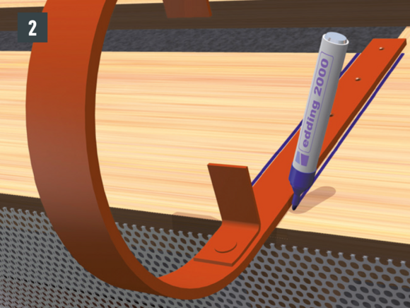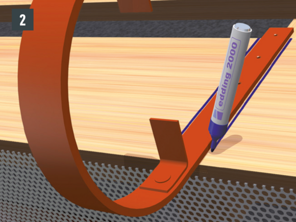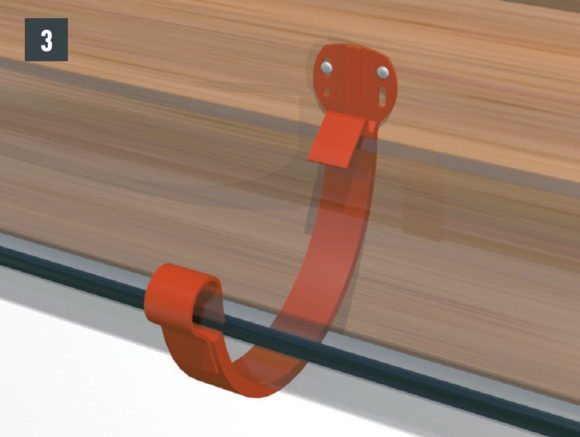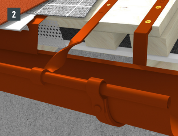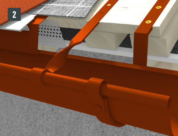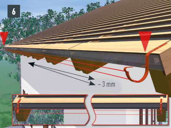 Pasy nadrynnowe należy odpowiednio wyciąć w obszarze wsporników. Wsporniki najlepiej montować podczas montażu rynien. Ich późniejsze dodanie już po zainstalowaniu rynien wiąże się z dużym nakładem pracy.