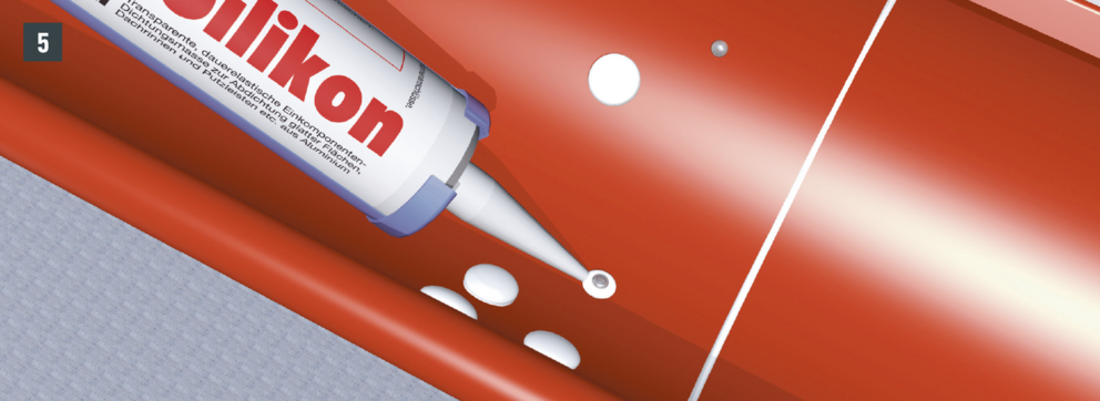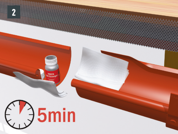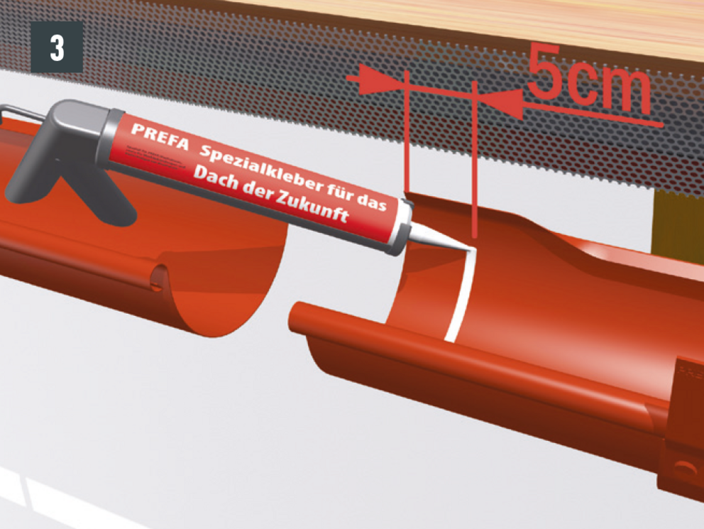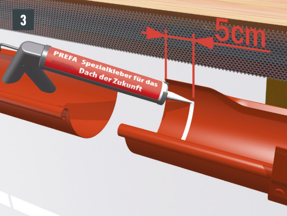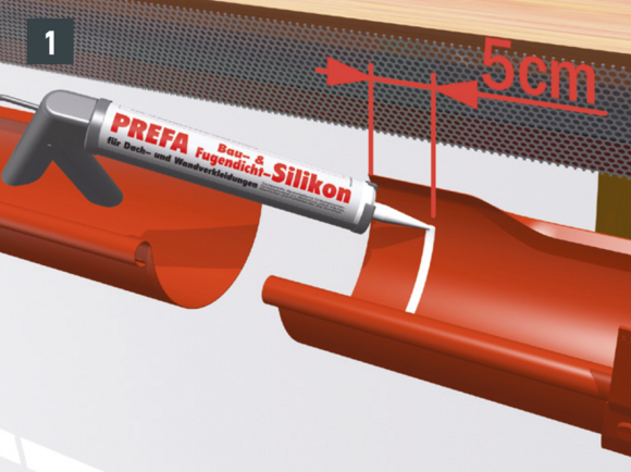 Łączenie rynien półokrągłych przy użyciu 1 kartusza kleju specjalnego