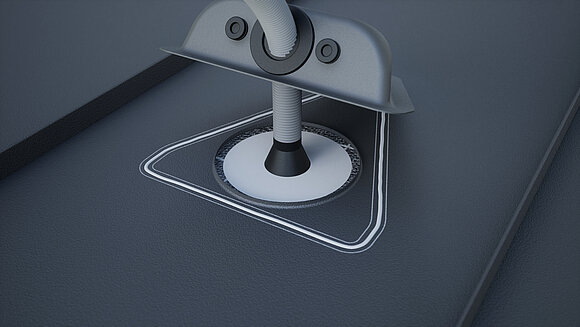 Przepust do kabli instalacji słonecznej PREFA w pokryciach dachowych PREFA.