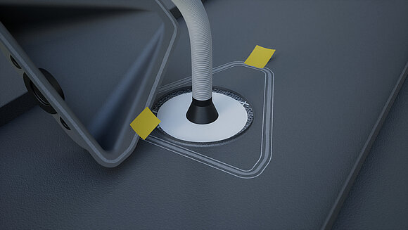 Do momentu utwardzenia kleju przepust do kabli instalacji fotowoltaicznej w razie potrzeby trzeba utrzymać w prawidłowej pozycji za pomocą zewnętrznych środków pomocniczych.