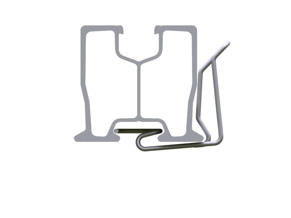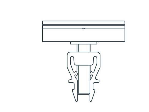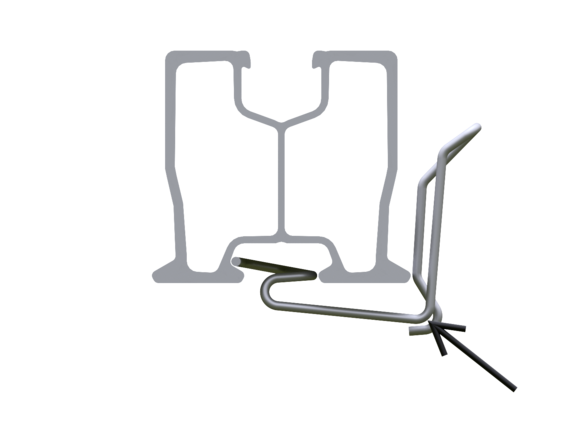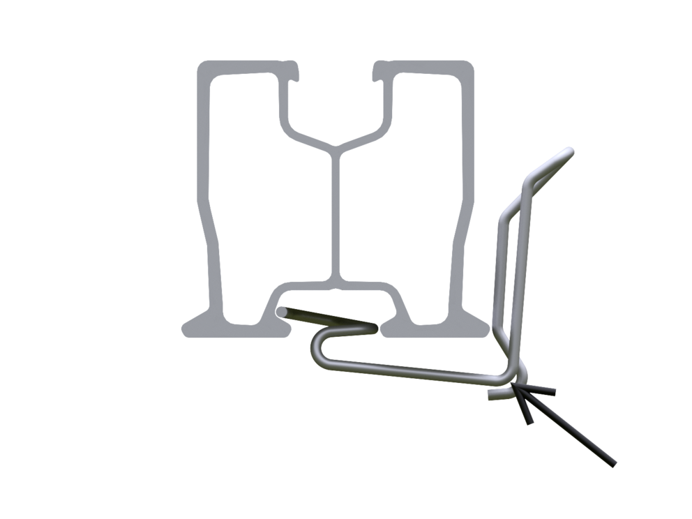 Zapinkę do kabli przykłada się pod skosem od dołu do rowka szyny i wciska w szynę, dociskając skośnie ku górze.