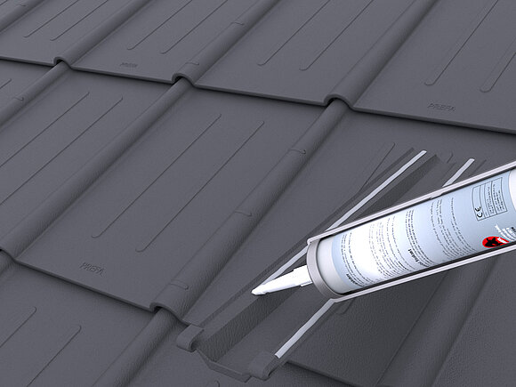 Przeszlifować i oczyścić w miejscu klejenia powierzchnie wspornika i dachówki. Na oszlifowany i oczyszczony wspornik nałożyć klej specjalny. Wspornik wsunąć w górny rąbek dachówki bezpośrednio nad zakładką lub rowkiem środkowym, a następnie opuścić. Popychając go do góry, wsunąć jak najgłębiej w rąbek.