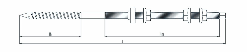 Zaznaczyć położenie śruby dwugwintowej. Konstrukcję drewnianą nawiercać wiertłem o średnicy ⌀ 8 mm. Wykonać otwory w Sunny Spezial i dachówkach wiertłem o średnicy ⌀ 13 mm. Wkręcić śrubę dwugwintową wiertarką (nakładka klucza nasadowego: SW 9). Głębokość wnikania w konstrukcję nośną (krokwie): min. 80 mm.