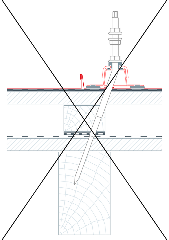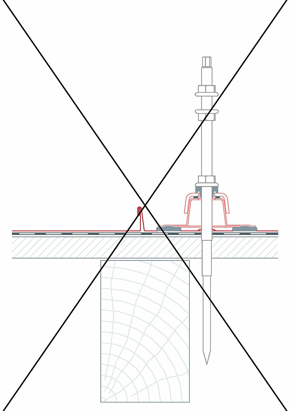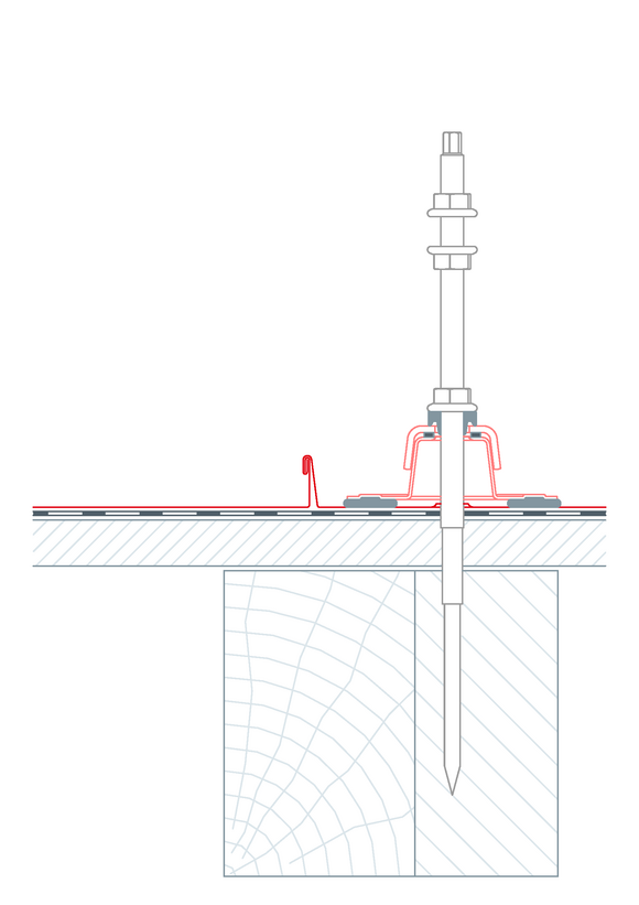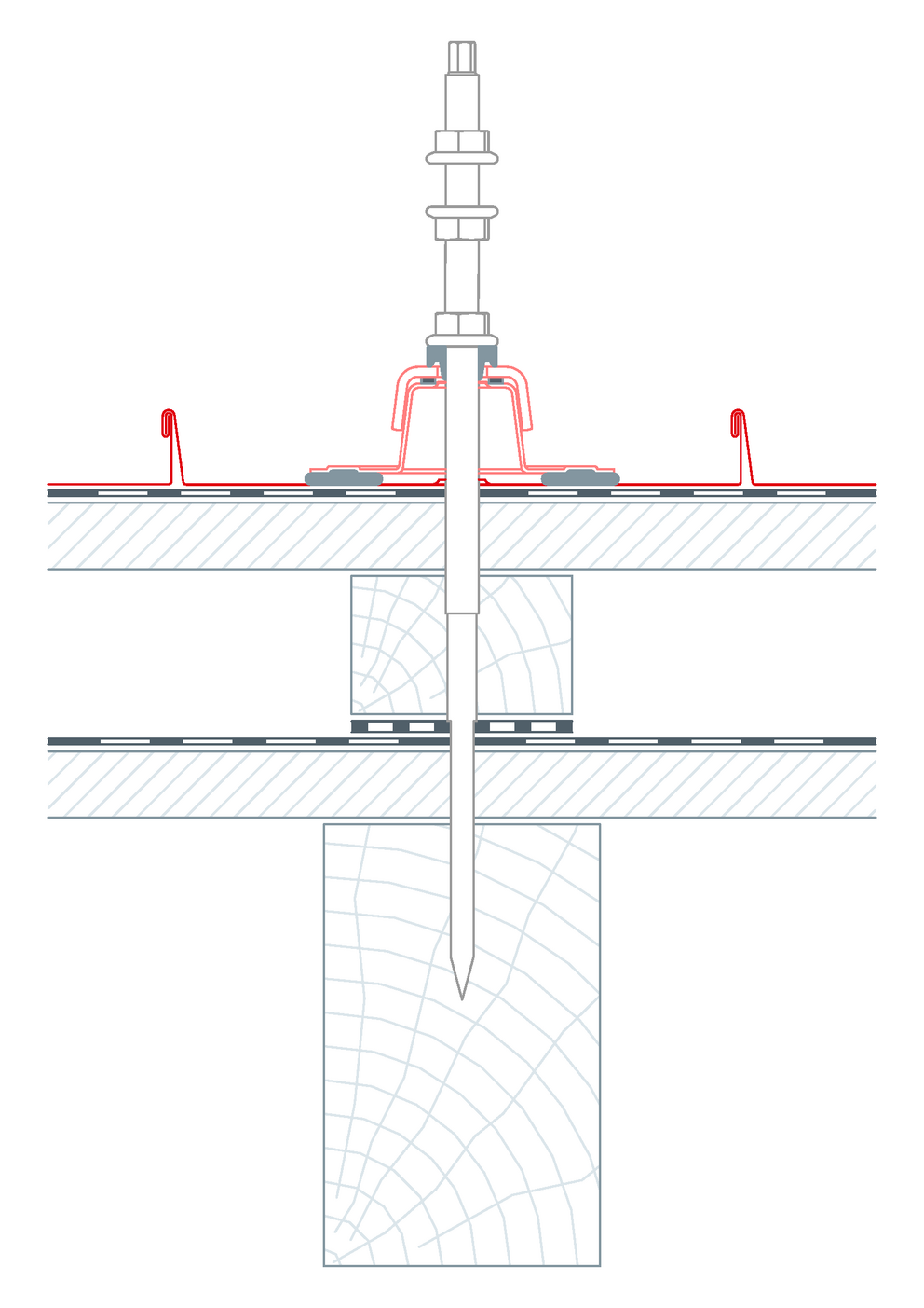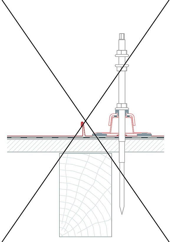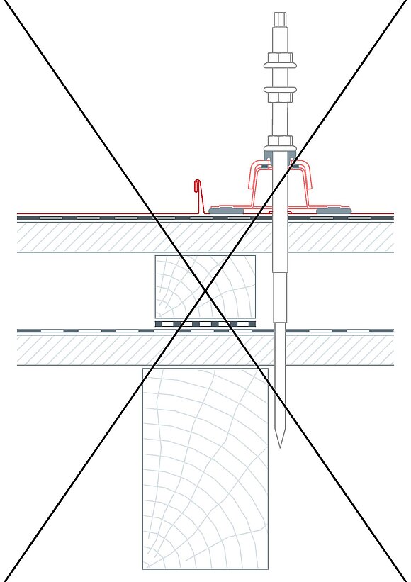 W przypadku konstrukcji dachowych wykonanych w systemie pojedynczego pokrycia można dokonać przesunięcia konstrukcji nośnej, do której mocowane będą śruby dwugwintowe (np. przez podwojenie krokwi na całej długości krokwi lub wstawienie poprzeczek).