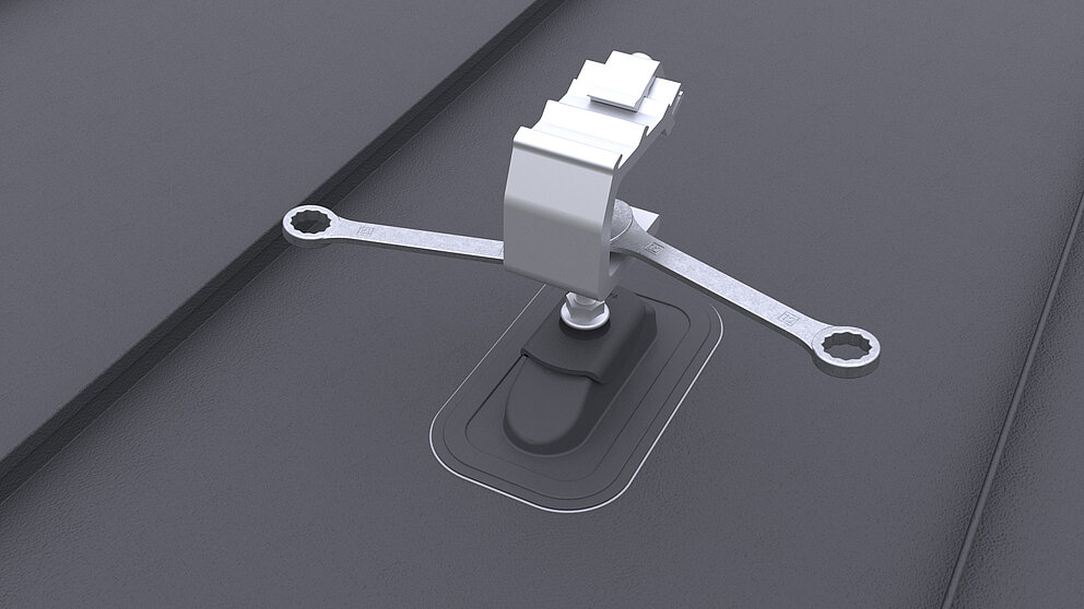 Wspornik można montować na pełnym deskowaniu lub na łatach. Jeżeli pokrycie dachowe wykonane jest z małoformatowych elementów dachowych PREFA, wówczas w celu zamontowania PREVARIO Sunny może być konieczne użycie blachy podkładowej, np. gdy nad krokwią w obszarze montażu znajduje się rąbek.
