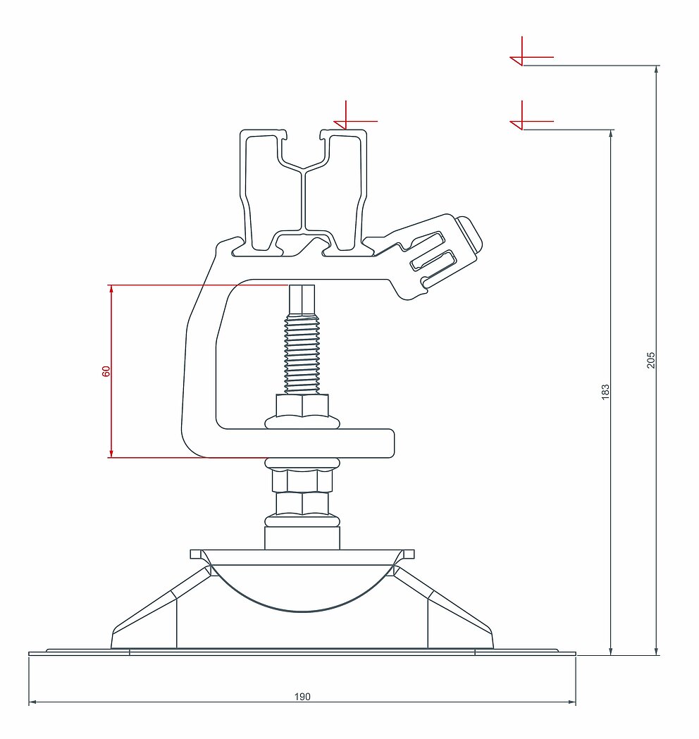 Dokręcić nakrętkę, aż uszczelka EPDM się wybrzuszy (klucz płaski: SW 18). Zamontować drugą nakrętkę i maksymalnie dokręcić. Od górnej krawędzi drugiej nakrętki (oparcie uchwytu szynowy) odmierzyć 60 mm w górę na śrubie dwugwintowej i odciąć. Założyć uchwyt szynowy i na odpowiedniej wysokości (zgodnie z pozostałymi wspornikami solarnymi) dokręcić dwoma kluczami płaskimi (klucz płaski: SW 18).