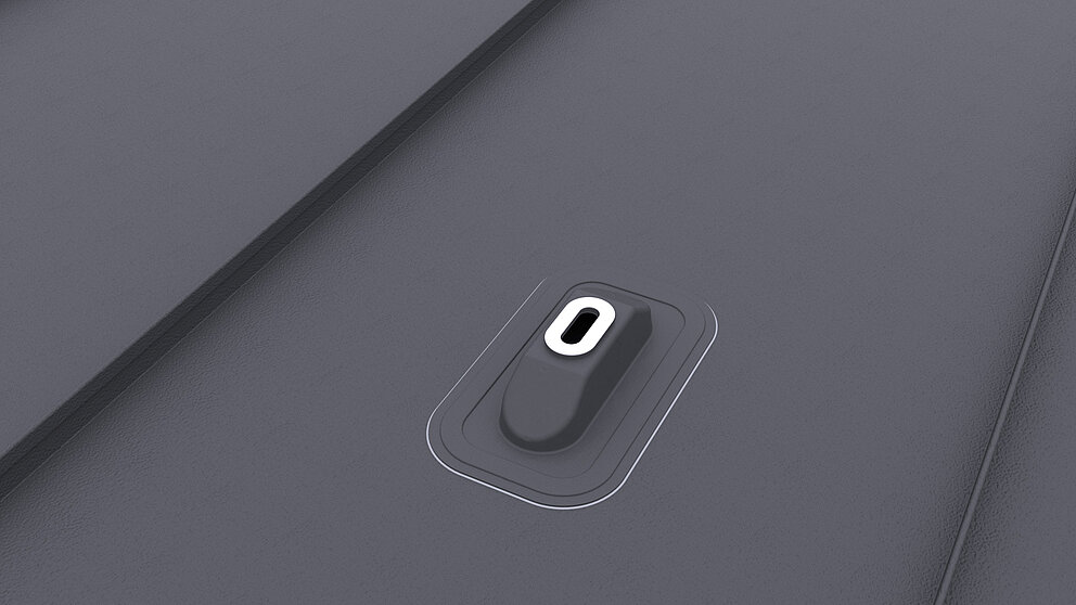 Jak widać na poprzednim rysunku, w przypadku małoformatowych produktów PREFA powierzchnia, na której można zamontować PREVARIO Sunny, jest dość ograniczona. Montaż tego wspornika możliwy jest bowiem tylko na płaskich powierzchniach. Ponieważ pełni on wyłącznie funkcję uszczelniającą, nakładkę wspornika można umieścić bliżej rąbka.