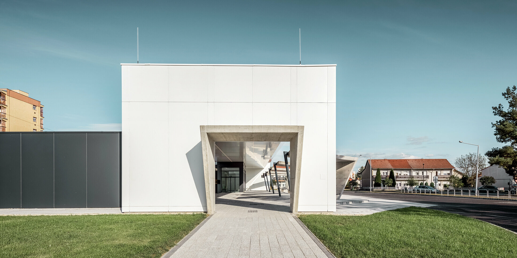 Dzięki takiej konstrukcji uzyskano efekt jakby zadaszenie unosiło się nad dworcem. Aby dodatkowo wzmocnić ten efekt, architekt poszukiwał lekkiego i trwałego materiału na dach i elewację. Ponieważ znał już aluminiowe płyty kompozytowe PREFABOND z poprzednich projektów, budynek został zaprojektowany niejako pod kątem produktu, dzięki czemu możliwe było ograniczenie ścinków. Płyty kompozytowe o długości czterech metrów, gładko pokrywają podbitkę dachu o długości 44 metrów i zdobią ciężką, stalową konstrukcję, a czysta biel dodaje jej lekkości. Pomieszczenia poczekalni zostały wyłożone PREFABOND w kolorze antracytowym P.10.